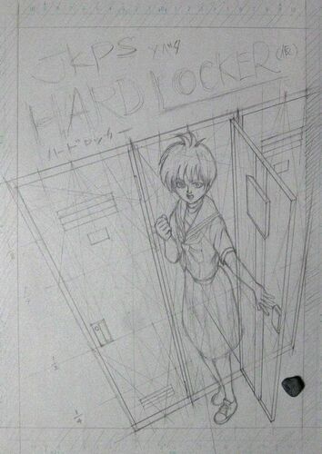 先週で一応ストーリーが終わりとなった漫画のタイトルページ(扉) まだ完成してなくて下書き状態。 ロッカーのパースを正確に取るために補助線がはいりまくってゴチャゴチャな感じ。 ちなみに消失点が紙の外にあって、そこを基準に線を引けない場合は、長方…