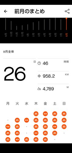 例によって遅い、てか遅すぎる先月のロードバイクライド統計報告。 走行距離958.2㎞ 獲得標高4,789m 7月から稼働日数同じで走行距離は微増って感じ。そして8月は100㎞ライドに出た8/4日以外全部が早朝ライドとなった。 ただ、この早朝ライドというやつ個人的…