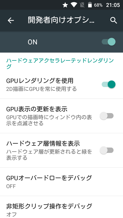 ここで諦めてしまうのも悔しいので、例の「開発者向けオプション」の設定を更に変更する技を試すことに。
