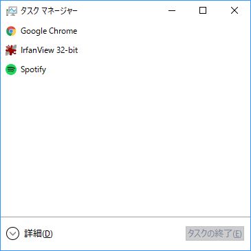 左端の列の一覧にSpotifyがあるので、アプリは起動中なのだが特に異常な様子は見られない。Gigazineの情報の通りなら一番上に張り付いているはずなのだが、たまに上に移動する位である。
