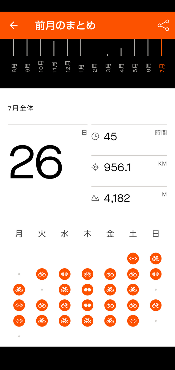 例によって遅い、てか遅すぎる先月のロードバイクライド統計報告。